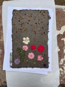 Dabei wurde das Papier nicht nur selbst geschöpft, sondern anschließend auch liebevoll mit echten Blumen und Samen verziert. Die Aktion vermittelte auf anschauliche Weise, wie aus vermeintlichem Abfall neue, sinnvolle Produkte entstehen können, und verband Umweltbildung mit kreativem Arbeiten.