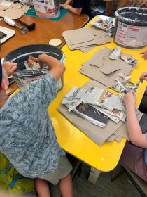 Gemeinsam zerkleinerten die Kinder das Altpapier und weichten es in Wasser ein, bis eine Papierpulpe entstand. Diese konnte nach Belieben eingefärbt und kreativ gestaltet werden. Besonders viel Freude hatten die Kinder daran, ihr Papier mit getrockneten Blumen, Blättern und anderen Naturmaterialien zu dekorieren.