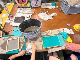 (Fotos: Jasmin Flaig und Text: Stefanie Meyer) Die NAJU Kindergruppe erlebt Recycling und stellen Papier her.